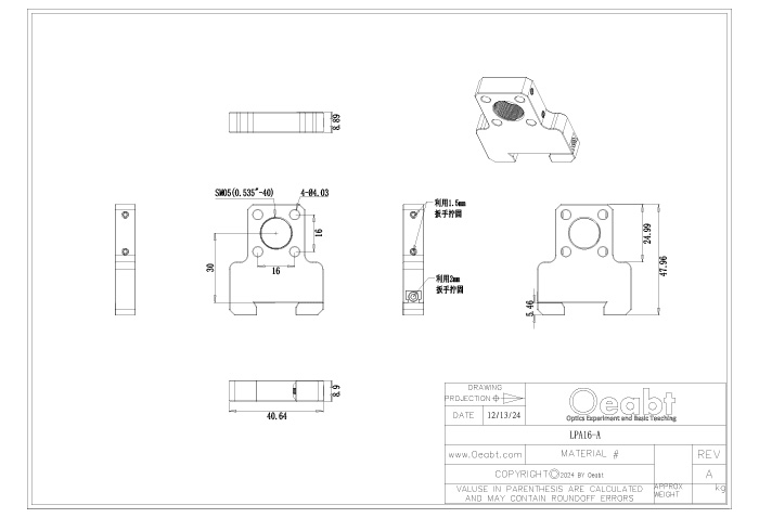 16mm燕尾籠板座系列用于將16mm籠式系統(tǒng)安裝到燕尾導(dǎo)軌,使安裝好的籠式系統(tǒng)中心對齊30mm的光軸高度(從導(dǎo)軌的上表面開始測量)。