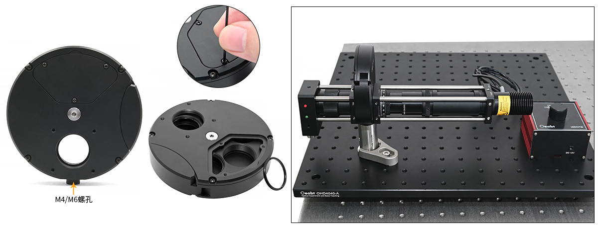 ? 六個(gè)SM1螺紋固定孔位,邊緣刻有編號(hào)便于識(shí)別濾光片位置;