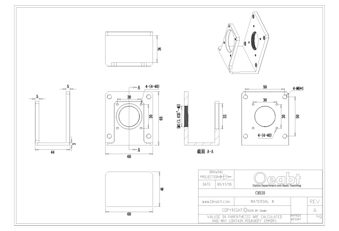 垂直支架可將安裝間距為50mm的位移臺(tái)豎直集成到30mm籠式系統(tǒng)中。
