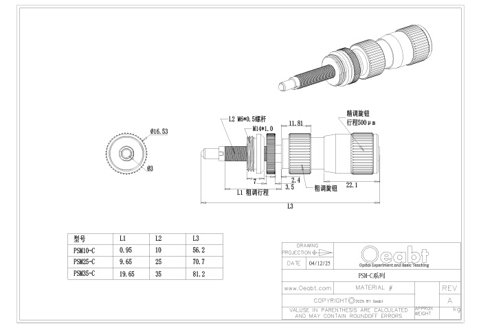 ? 粗調(diào)一圈0.5mm,精調(diào)分辨率2.5μm;