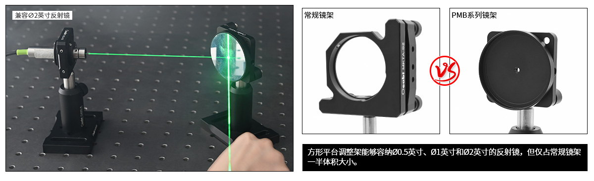 與常規(guī)調(diào)整架相比,平臺調(diào)整座的一大優(yōu)勢是能夠固定與調(diào)整架相同尺寸或更大的光學(xué)元件。