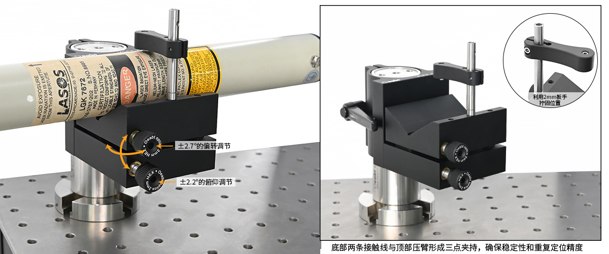 ? 提供±2.2°俯仰和±2.7°偏轉(zhuǎn)調(diào)節(jié),精度6.6mrad/圈;