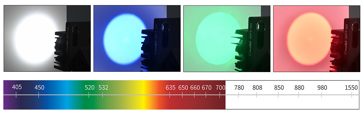 ? 中心波長范圍從454nm到640nm,也提供白光選項(xiàng);