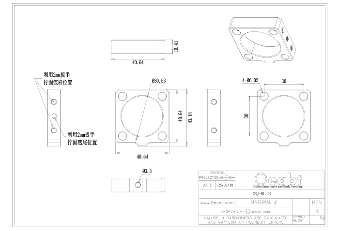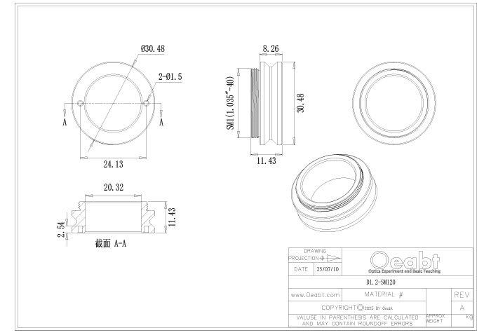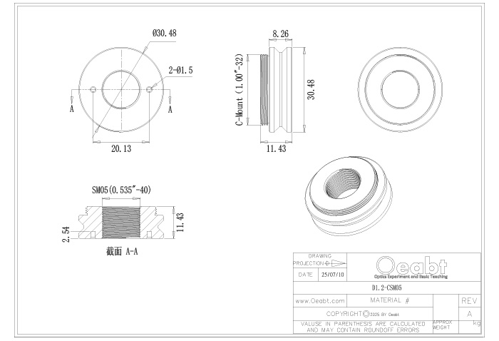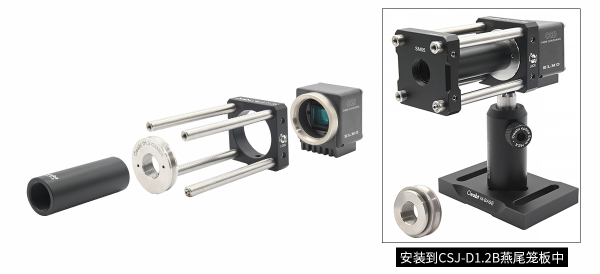 燕尾轉(zhuǎn)接件具有C-Mount或SM1外螺紋,中心還開有SM05螺紋孔或?20.3mm平滑孔,兼容科研相機和帶SM螺紋的光機組件。