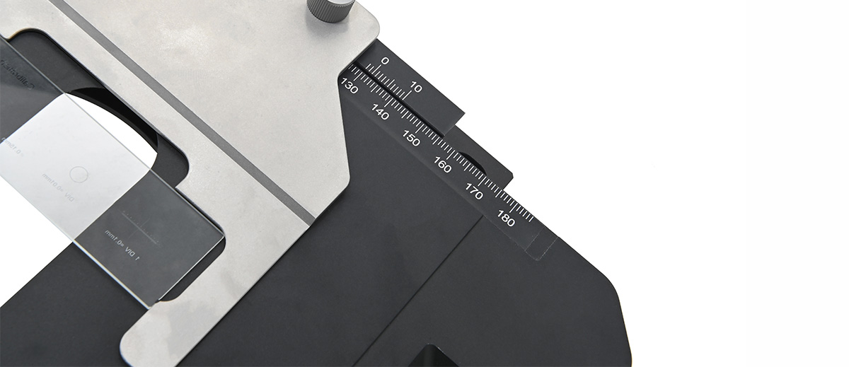 ? 臺面帶刻度尺分度1mm,游標刻度100μm;