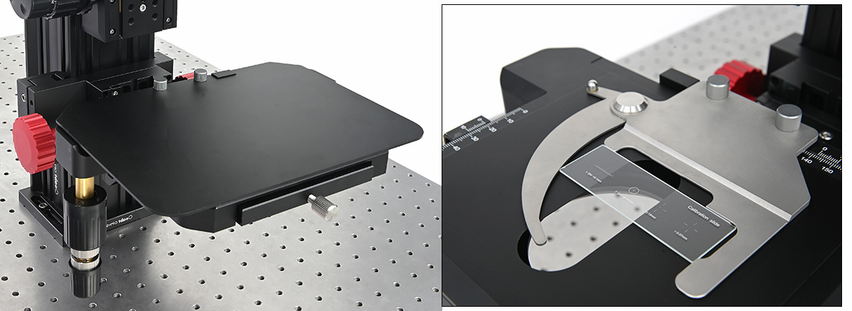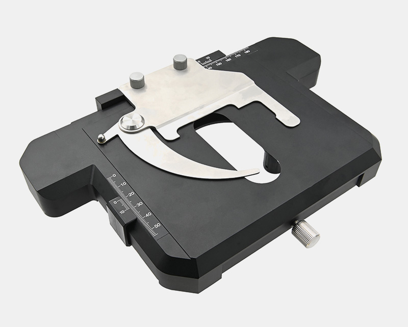 載物臺采用滾珠軸承傳動,每根軸的邊沿有精度為100μm的游標刻度,便于定位樣品。