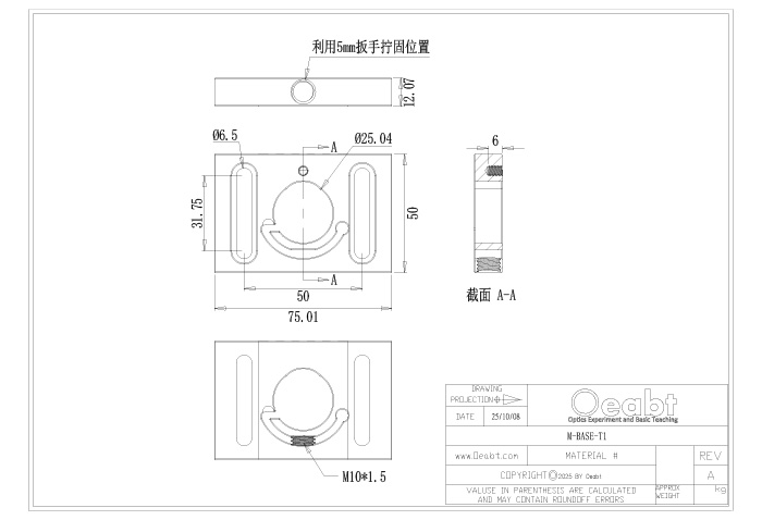 提供多種底座選項(xiàng),常用于將12mm、?1英寸和?1.5英寸接桿支架定位和固定在光學(xué)平臺(tái)上。