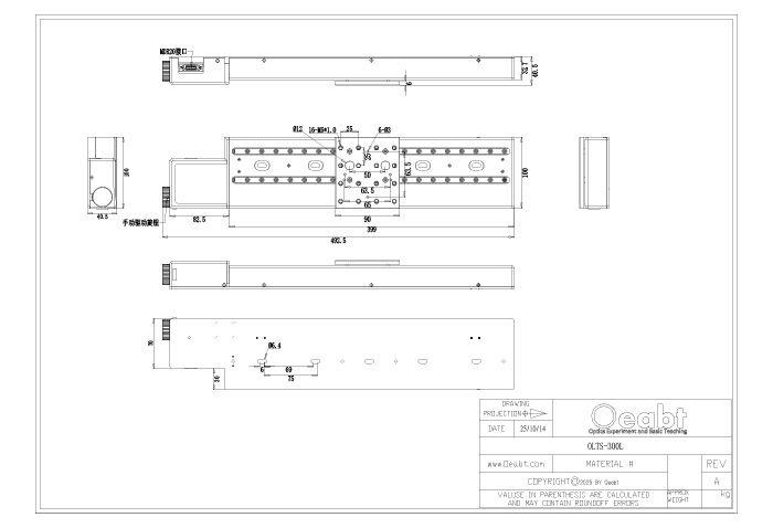 注*:最高、最低運動速度及點動距取決于運動控制器的脈沖頻率及設定,因此上述*號標注參數(shù),均為采用Oeabt? O‘motion 四軸運動控制系統(tǒng)下的測試結(jié)果。 |
