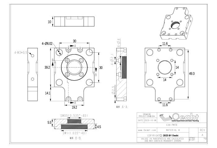 ? 沉頭孔用于PMT的連接,附帶4顆M2柱頭螺絲安裝;