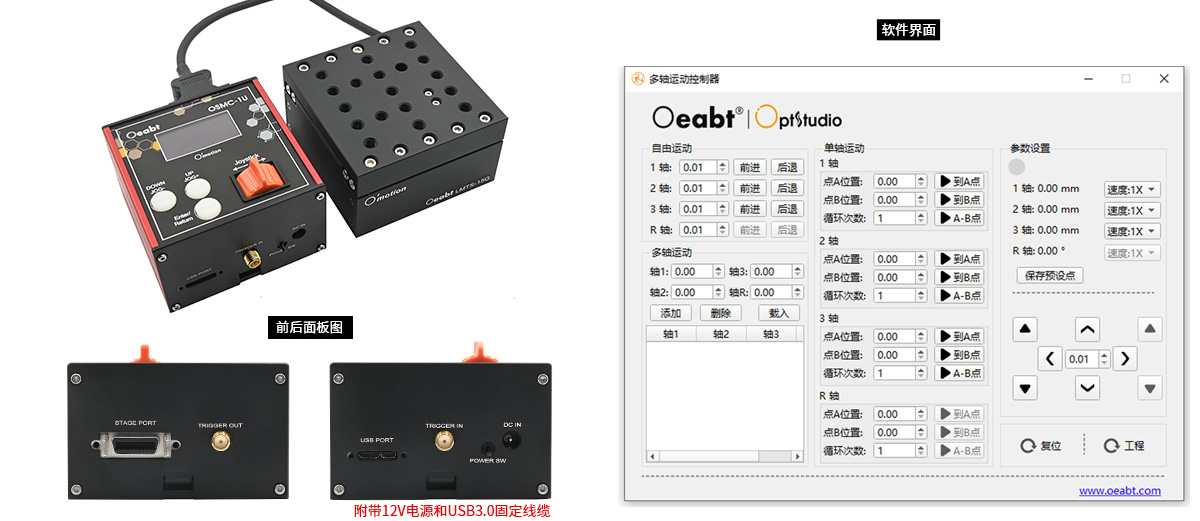 注*:最高、最低運(yùn)動速度及點(diǎn)動距取決于運(yùn)動控制器的脈沖頻率及設(shè)定,因此上述*號標(biāo)注參數(shù),均為采用Oeabt? O‘motion 四軸運(yùn)動控制系統(tǒng)下的測試結(jié)果。
