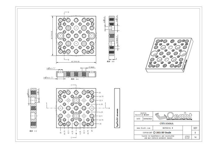 沉頭孔: 4處M4、4處M6; 螺紋孔: 24處M4、17處M6; |