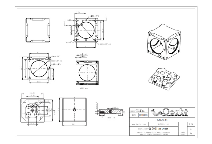 30mm籠式立方體搭建包括棱鏡、分束器和其他產(chǎn)生90°光路偏移的光學(xué)元件。用于將20mm/25 mm/1英寸的分束立方或直角棱鏡安裝到30mm籠式系統(tǒng)中,起到籠式系統(tǒng)搭建轉(zhuǎn)接,保護(hù)鏡片的作用。